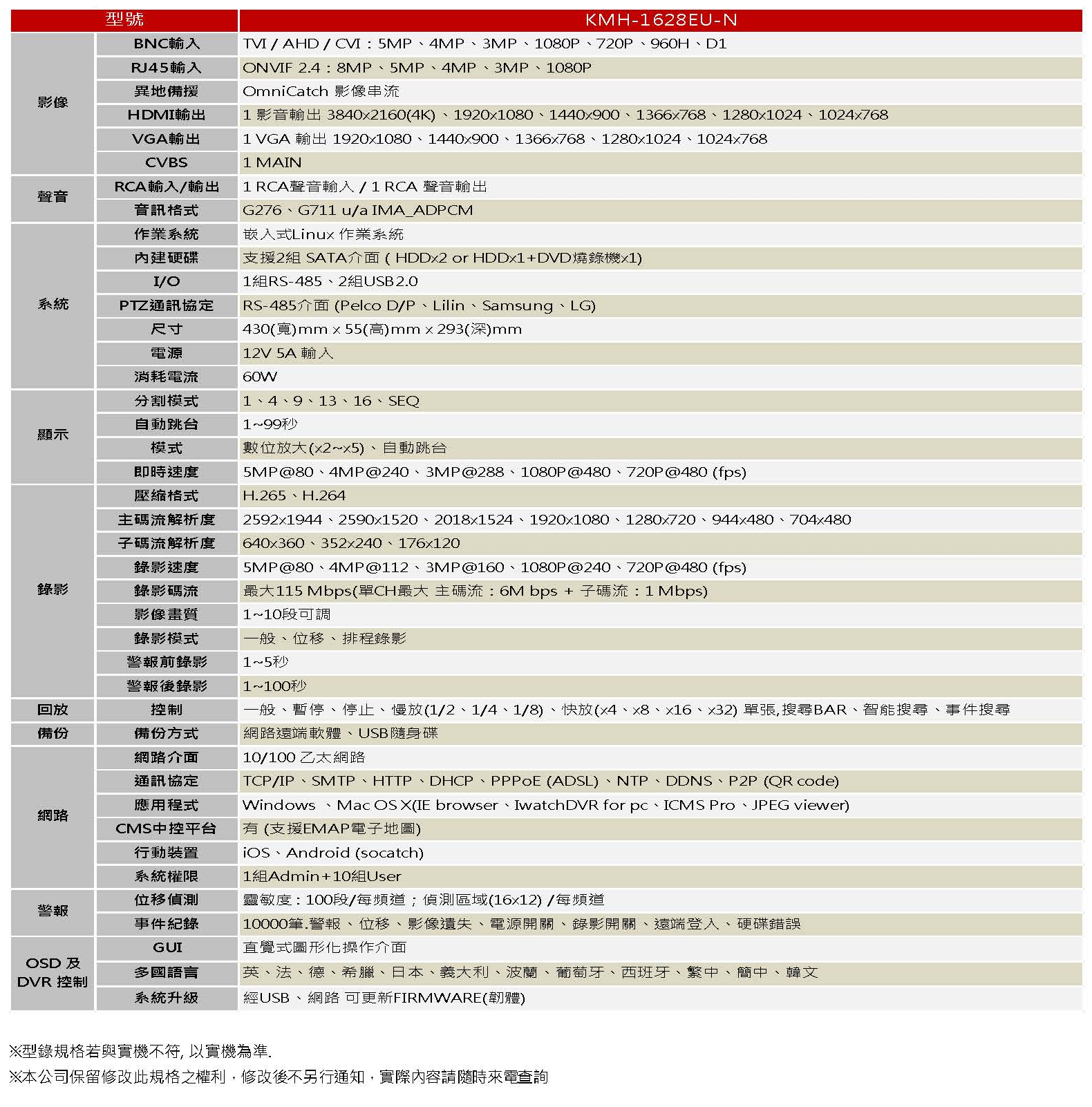 ●H.265 壓縮:畫質清晰、錄影時間長、傳輸速率快。4K 超高畫質輸出、4K 模式下 5MP 全接滿建議選擇 KMH25 系列。