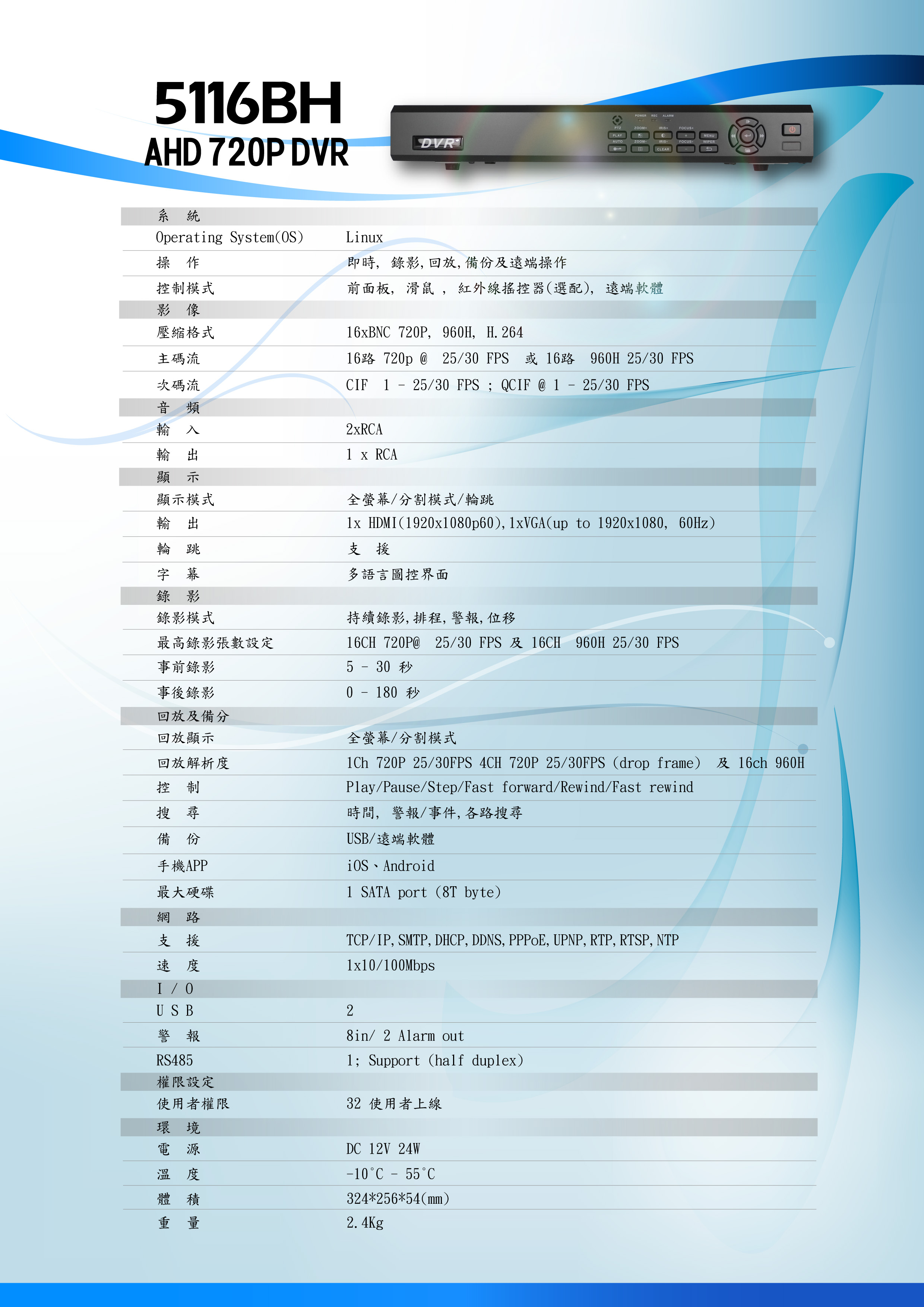 漢邦 AHD DVR5116-BH