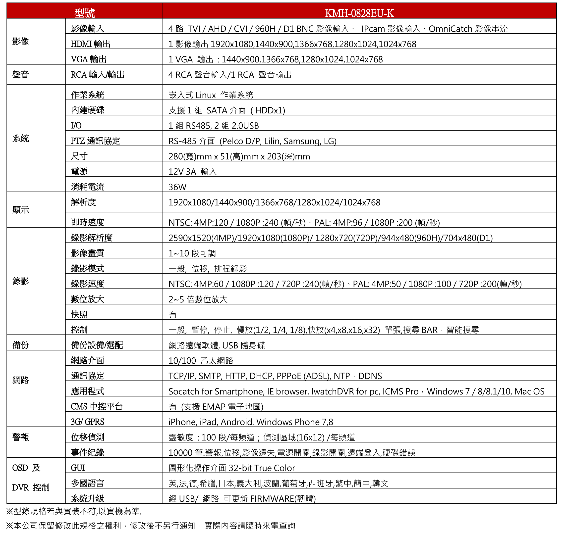 .支援IPC、AHD、TVI、CVI、960H/D1 各式攝影機訊號,攝影機影像可隨意更換。