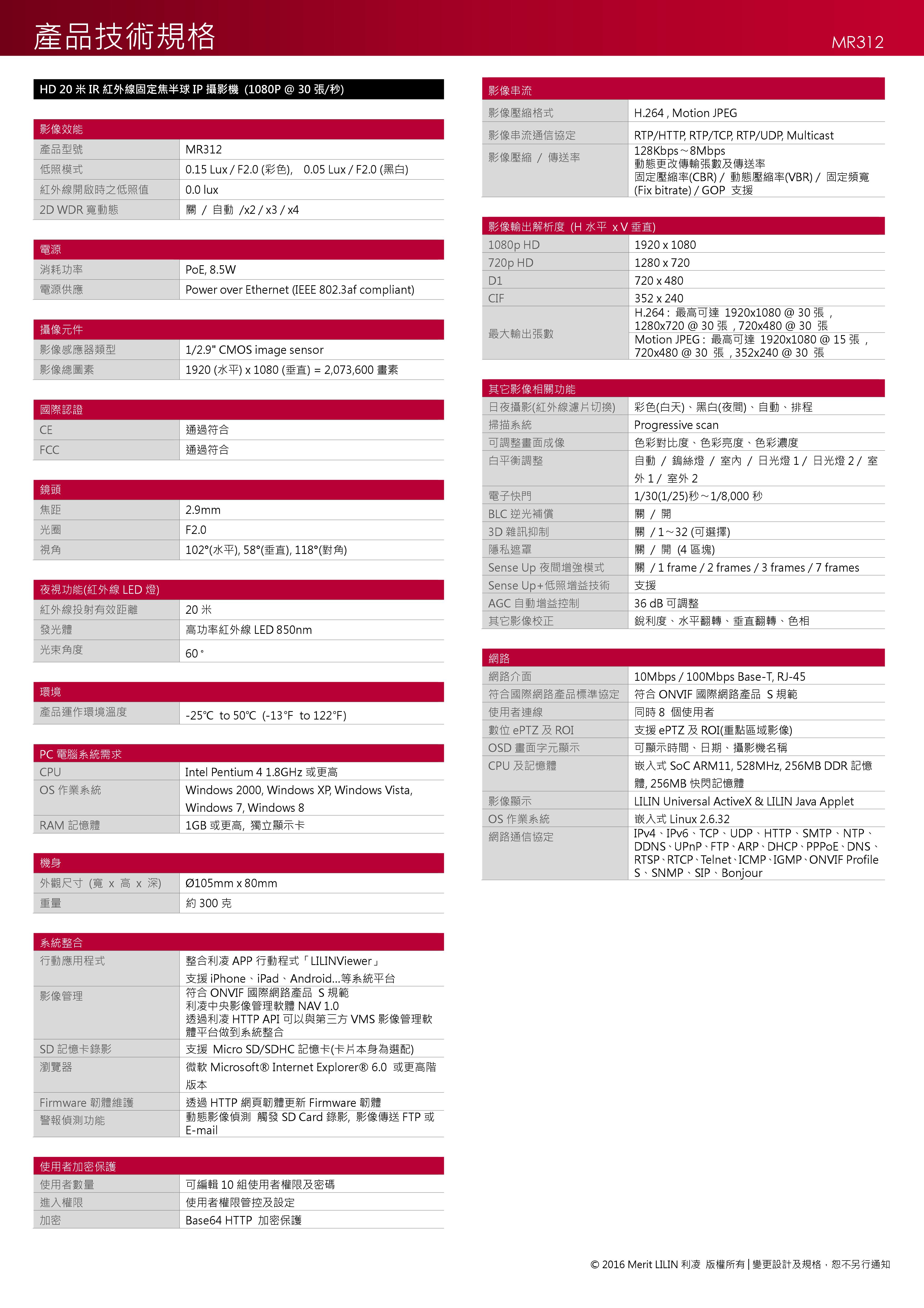 ● 內建IP紅外線半球IP網路型攝影機