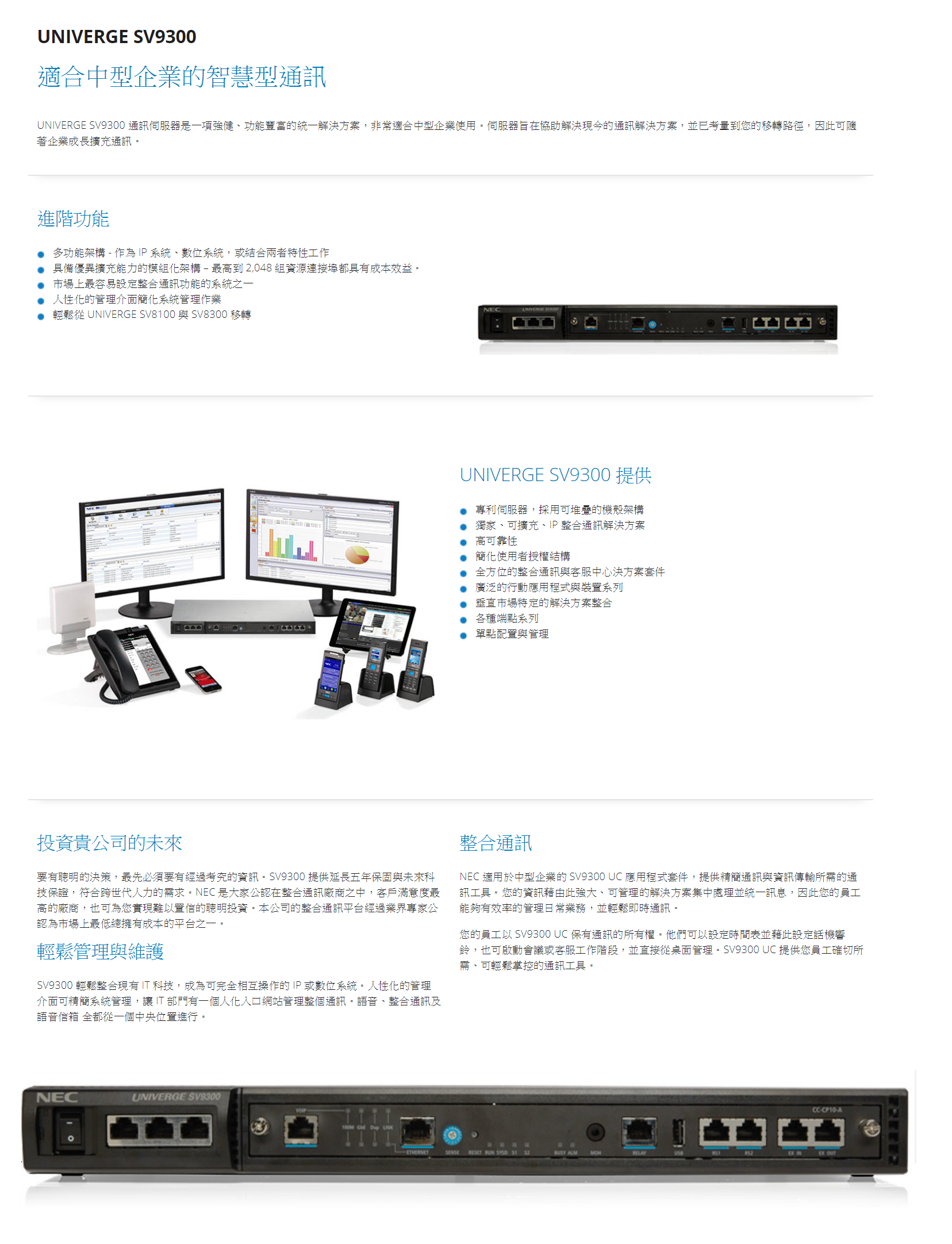 ● 獨家、可擴充、IP 整合通訊解決方案